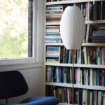 ネルソンバブルンプシリーズのひとつシガーロータスランプは、細長い球体のフォルムにすっきりとした平行線がアクセントを加えています。スチール製のベースに取り付けられたランプが、柔らかな明かりを放ちます。バブルランプは、ジョージ・ネルソンがシルクで覆われたスウェーデン製のペンダントランプから着想を得て、1952年にデザインしたものです。