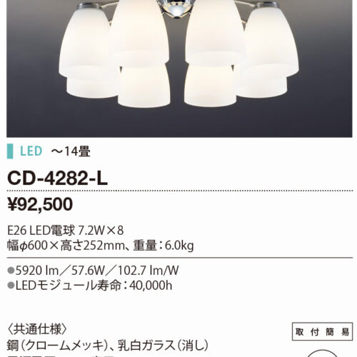 CD-4282-L 山田照明 シャンデリア 〜14畳