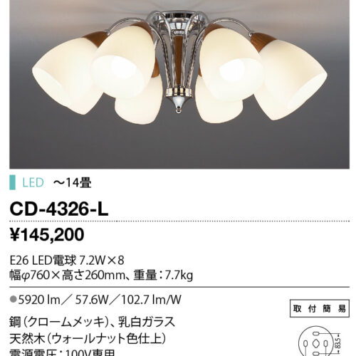 CD-4326-L 山田照明 D.Scandza(スカンザ)シャンデリア 〜14畳