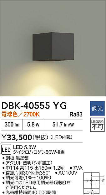 DBK-40555YG 大光電機 ブラケット (LED内蔵)