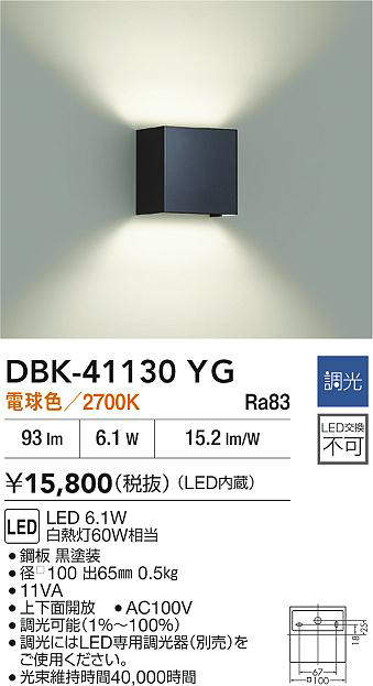 DBK-41130YG 大光電機 ブラケット (LED内蔵)