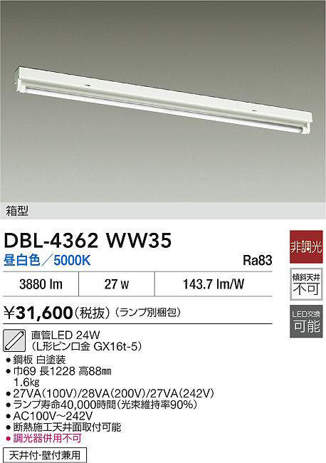 DBL-4362WW35 大光電機 ベースライト (ランプ別梱包)
