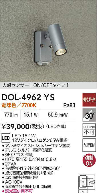 DOL-4962YS 大光電機 人感センサー付アウトドアスポット (LED内蔵)