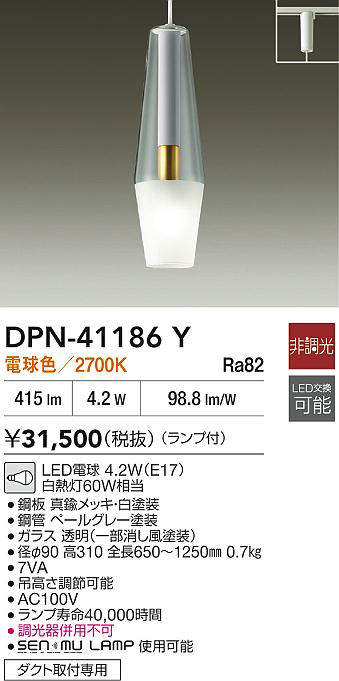 DPN-41186Y 大光電機 ペンダント (ランプ付)
