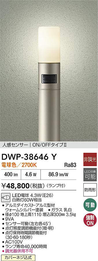 DWP-38646Y 大光電機 人感センサー付アウトドアローポール (ランプ付)