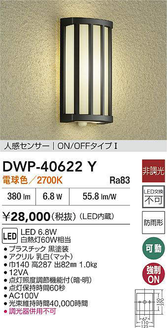 DWP-40622Y 大光電機 人感センサー付アウトドアライト (LED内蔵)