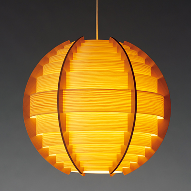 ヤコブソンランプはスウェーデンのデザイナー、ハンス-アウネ・ヤコブソンがデザインした照明です。じっくり自然乾燥させたヨーロッパ産のパイン(マツ)材を薄くスライスした材料を活かしたデザインが特長で、長年にわたり、ヤコブソンのデザインを代表する作品となっています。薄いパイン材のシェードを通してほのかな光の温もりが感じられ、人間味あふれる優しいあかりに仕上がっています。パイン材は、時間の経過とともに色に深みと味わいを増していきます。