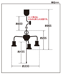 | 説明文 | コード長さ約60.0cm 全長約86.5cm 幅約33.0cm 高さ約20.5cm 重量約l,130g ・スチール(黒塗装)・丸環(黒塗装)・ローカンビス止めホルダー(黒塗装)?E-26モーガルソケット・黒コード・引掛シーリングキャップ付・黒GPフレンジ・丸木自在(茶)付・プルスイッチ付(ON-OFF) |