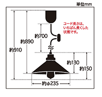 | ランプ | E26口金で40W以下の白熱ランプ・LEDランプ・電球形蛍光灯が使用可能 |