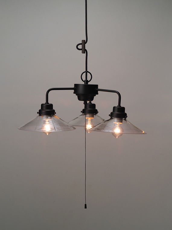 ・透明Pl硝子セード・スチール(黒塗装)・丸環(黒塗装) ・小ロホルダー(黒塗装)?E-26モーガルソケット・黒コード・引掛シーリングキャップ付・黒CPフレンジ・丸木自在(茶)付・プルスイッチ付(ON-OFF)