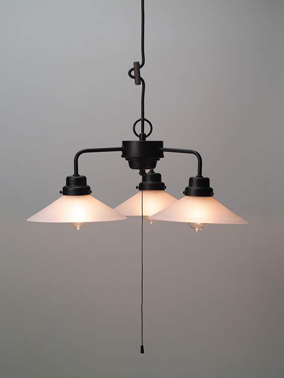 | 説明文 | コード長さ約60.0cm 全長約91.0cm 幅約53.0cm 高さ約25.0cm 重量約2,090 ・外消しPl硝子セード・スチール(黒塗装)・丸環(黒塗装)・小ロホルダー(黒塗装)?E-26モーガルソケット・黒コード・引掛シーリングキャッブ付・黒CPフレンジ・丸木自在(茶)付・プルスイッチ付(ON-OFF) |