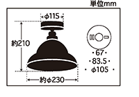 | ランプ | E26口金で60W以下の白熱ランプ・LEDランプ・電球形蛍光灯が使用可能 |