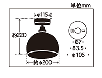 | 説明文 | 幅約20.0cm 高さ約22.0cm 重量約810g ・鉄鉢硝子セード・スチール(黒塗装) ・小ロホルダー(黒塗装) ? E-26モーガルソケット・フリー型速結端子付 |