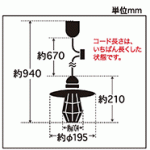 | 説明文 | コード長さ約67.0cm 全長約94.0cm 幅 約19.5cm 高さ約21.0cm 重量約452g ・アルミPlセード(緑塗装/内面白塗装)・スチール(緑塗装)・木製飾り・E-26〆付けモーガルソケット・黒コード・引掛シーリングキャップ付・黒CPフレンジ・角木自在(茶)付・〆付けガード |