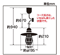 | ランプ | E26口金で60W以下の白熱ランプ・LEDランプ・電球形蛍光灯が使用可能 |