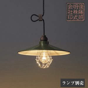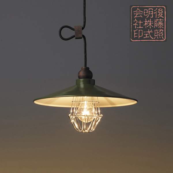 ・アルミPllセード(緑塗装/内面白塗装)・スチール(緑塗装)・木製飾り・E-26rl付けモーガルソケット・黒コード・引掛シーリングキャップ付・黒CPフレンジ・角木自在(茶)付・メ付けガード