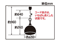 | ランプ | E26口金で60W以下の白熱ランプ・LEDランプ・電球形蛍光灯が使用可能 |