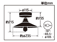 | ランプ | ランプ別売(E26口金で40W以下の白熱ランプ・LEDランプ・電球形蛍光灯が使用可能) |