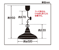 | 説明文 | コード長さ約67.0cm 全長約95.0cm 幅約32.0cm 高さ約22.0cm 重量約560g ・アルミ配照セード(白塗装)・スチール(白塗装)・丸環(白塗装)・小ロホルダー(白塗装)?E-26モーガルソケット・白コード・引掛シーリングキャップ付・白CPフレンジ・丸木自在(生地)付 |