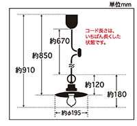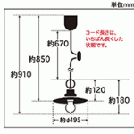 | 説明文 | コード長さ約67.0cm 全長約85.0cm 幅約19.5cm 高さ約12.0cm 重量約347g ・アルミPlセード(緑塗装/内面白塗装)・スチール(緑塗装)・丸環(緑塗装)・小ロホルダ一(緑塗装)・E-26モーガルソケット・黒コード・引掛シーリングキャップ付・黒CPフレンジ・丸木自在(茶)付 |