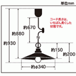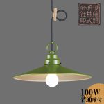 | 説明文 | コード長さ約67.0cm 全長約88.0cm 幅約34.0cm 高さ約15.0cm 重量約560g ・アルミPllセード(緑塗装/内面白塗装)・スチール(緑塗装) ・丸環(緑塗装)・小ロホルダ一(緑塗装)?E-26モーガルソケット・黒コード・引掛シーリングキャップ付・黒CPフレンジ・丸木自在(茶)付 |