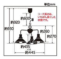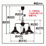 | 説明文 | コード長さ約60.0cm 全長約92.0cm 幅約44.5cm 高さ約26.0cm 重量約1,340g ・アルミP5Sセード(両面黒塗装)・スチール(黒塗装) ・丸環(黒塗装)・ローカンビス止めホルダー(黒塗装) ?E-26モーガルソケット・黒コード・引掛シーリングキャップ付・黒CPフレンジ・丸木自在(茶)付・プルスイッチ付(ON-OFF) |