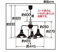 | 説明文 | コード長さ約60.0cm 全長約92.0cm 幅約44.5cm 高さ約26.0cm 重量約1,325g ・アルミP5Sセード(生地)・スチール(黒塗装)・丸環(黒塗装)・ローカンビス止めホルダー(黒塗装) ?E-26モーガルソケット・黒コード・引掛シーリングキャップ付・黒CPフレンジ・丸木自在(茶)付・プルスイッチ付(ON-OFF) |