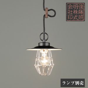 ・アルミPlセード(黒塗装/内面白塗装)・スチール(黒塗装)・丸環(黒塗装)・E-26〆付けモーガルソケット・黒コード・引掛シーリングキャップ付・黒CPフレンジ・丸木自在(茶)付・メ付けガード