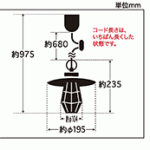 | 説明文 | コード長さ約68.0cm 全長約97.5cm 幅約19.5cm 高 さ約23.5cm 重量約452g ・アルミP l セード(生地)・スチール(真鍮ブロンズ鍍金) ・丸環(真鍮ブロンズ鍍金)?E-26〆付けモーガルソケット・黒コード・引掛シーリングキャップ付・黒CPフレンジ・丸木自在(茶)付・〆付けガード |