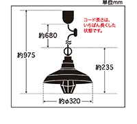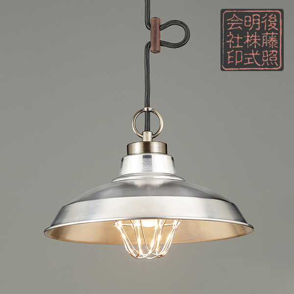 ・アルミ配照セード(生地)・スチール(真鍮ブロンズ鍍金)・丸環(真鍮ブロンズ鍍金)・E-26v/付けモーガルソケット・黒コード・引掛シーリングキャップ付・黒CPフレンジ・丸木自在(茶)付?〆付けガード