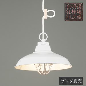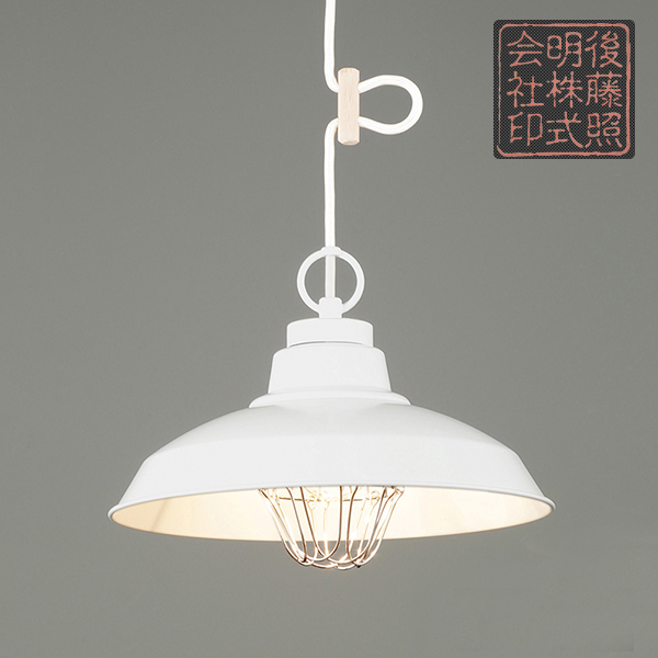 | 説明文 | コード長さ約68.0cm 全長約97.5cm 幅約32.0cm 高さ約23.5cm 重量約650 ・アルミ配照セード(白塗装)・スチール(白塗装)・丸環(白塗装) ?E-26~付けモーガルソケット・白コード・引掛シーリングキャップ付・白CPフレンジ・丸木自在(生地)付・〆付けガード |