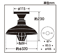 | 説明文 | 幅約32.0cm 高さ約23.0cm 重量約720g ・アルミ配照セード(生地)・スチール(真鍮ブロンズ鍍金) ?E-26〆付けモーガルソケット・フリー型速結端子付・〆付けガード |