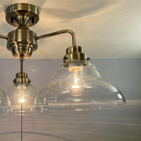 GLF-3542BR 後藤照明手吹きクリア硝子ベルリヤ 真鍮ブロンズメッキ 3灯シーリングライト