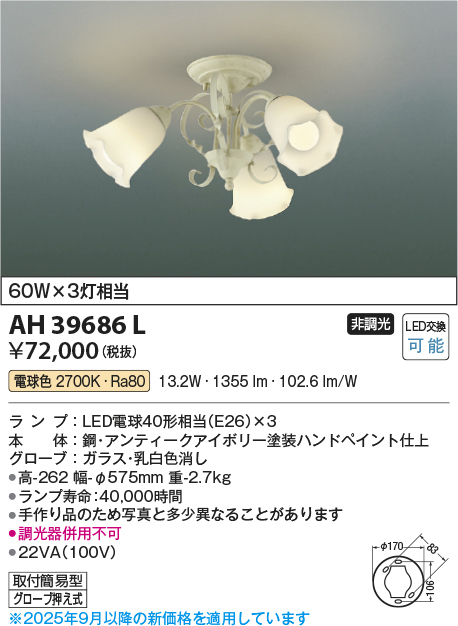 AH39686L コイズミ照明 LEDシーリング 60W×3灯相当