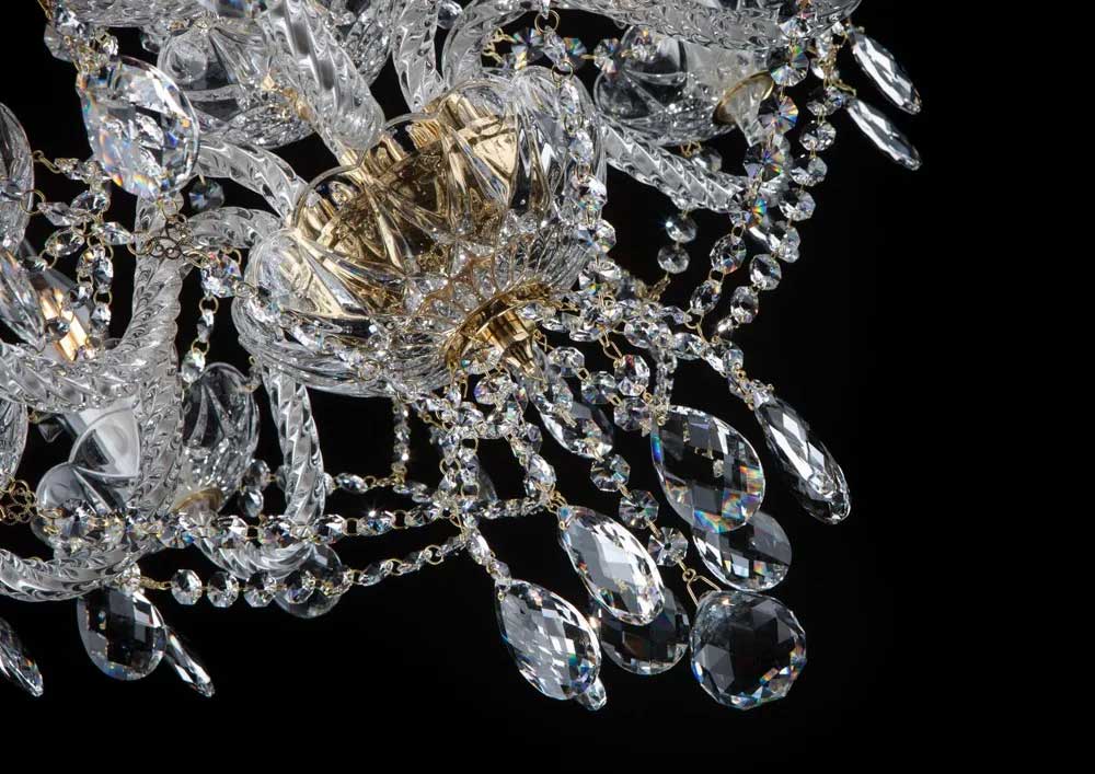 世界中へシャンデリアを輸出し続けるチェコ製のボヘミアンクリスタルシャンデリアです。その繊細なガラスの精錬とカットの技術はまさに職人の技術と伝統の賜物です。光の屈折と反射を考慮しデザインされたスタイルはシャンデリアの王道とも言えます。フレームには真鍮、クリスタルDROPにはプレシオサクリスタルを使用することでさらにステータスを高めています。