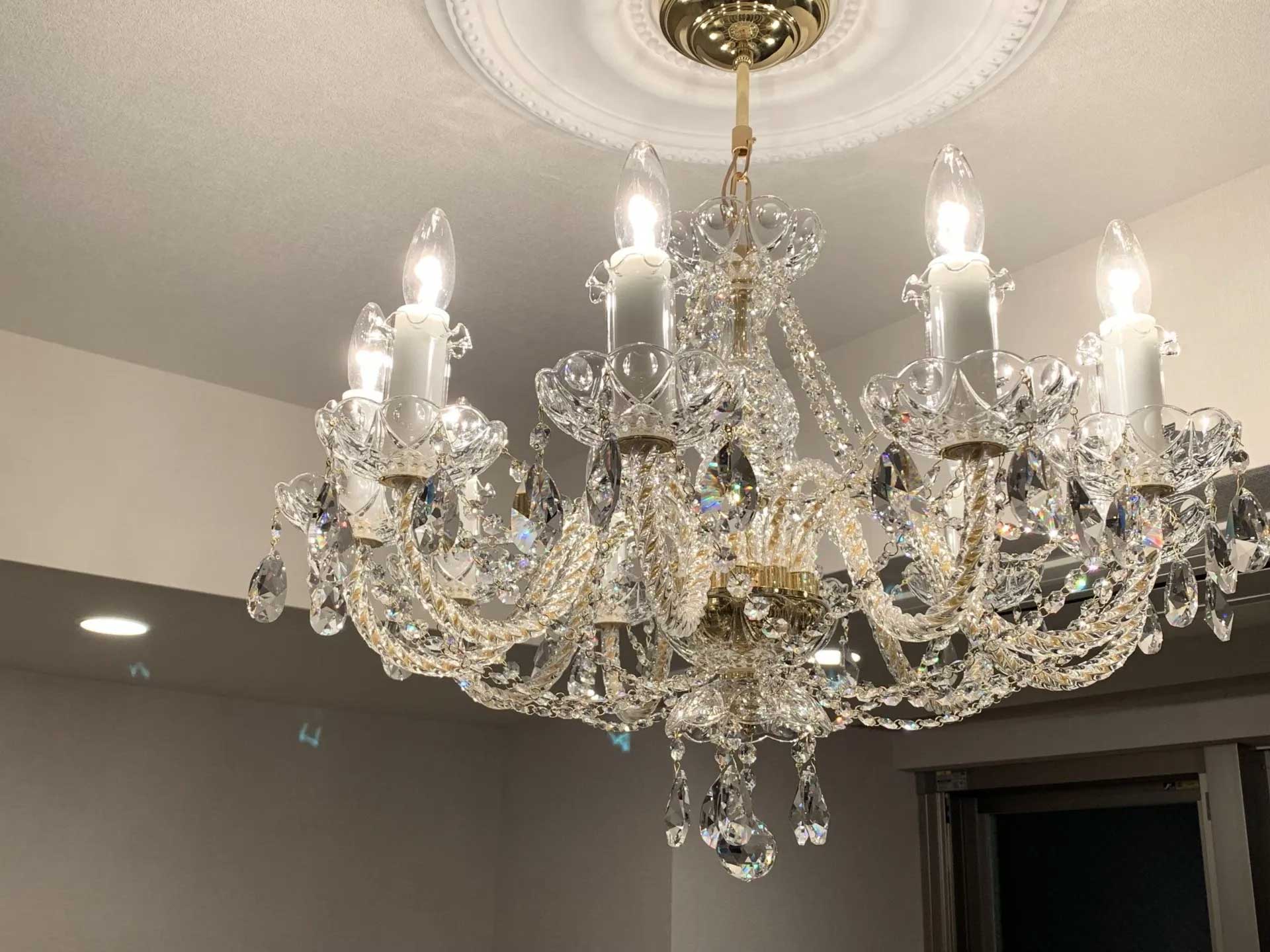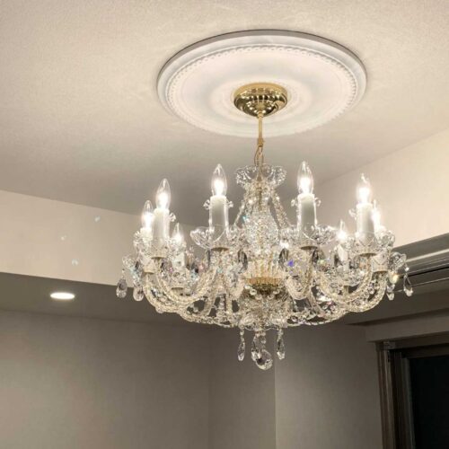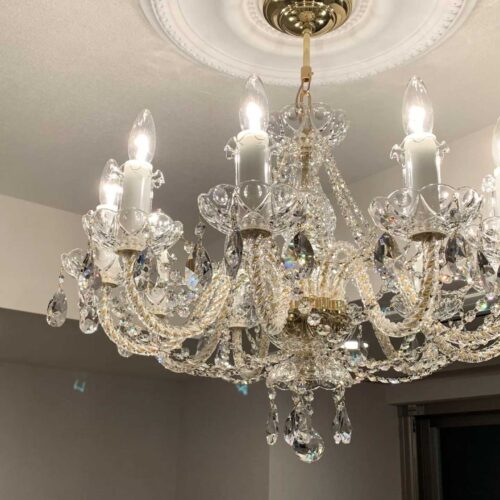 世界中へシャンデリアを輸出し続けるチェコ製のボヘミアンクリスタルシャンデリアです。その繊細なガラスの精錬とカットの技術はまさに職人の技術と伝統の賜物です。光の屈折と反射を考慮しデザインされたスタイルはシャンデリアの王道とも言えます。フレームには真鍮、クリスタルDROPにはプレシオサクリスタルを使用することでさらにステータスを高めています。