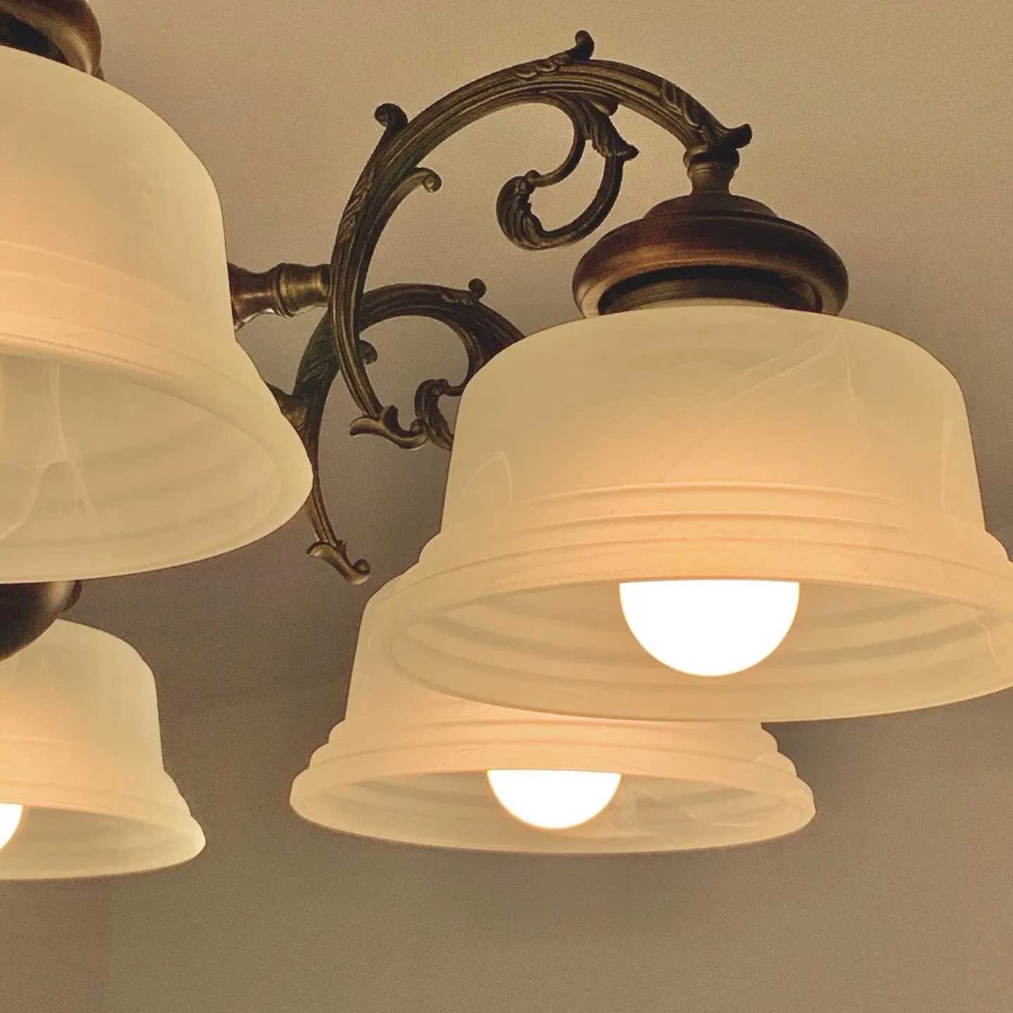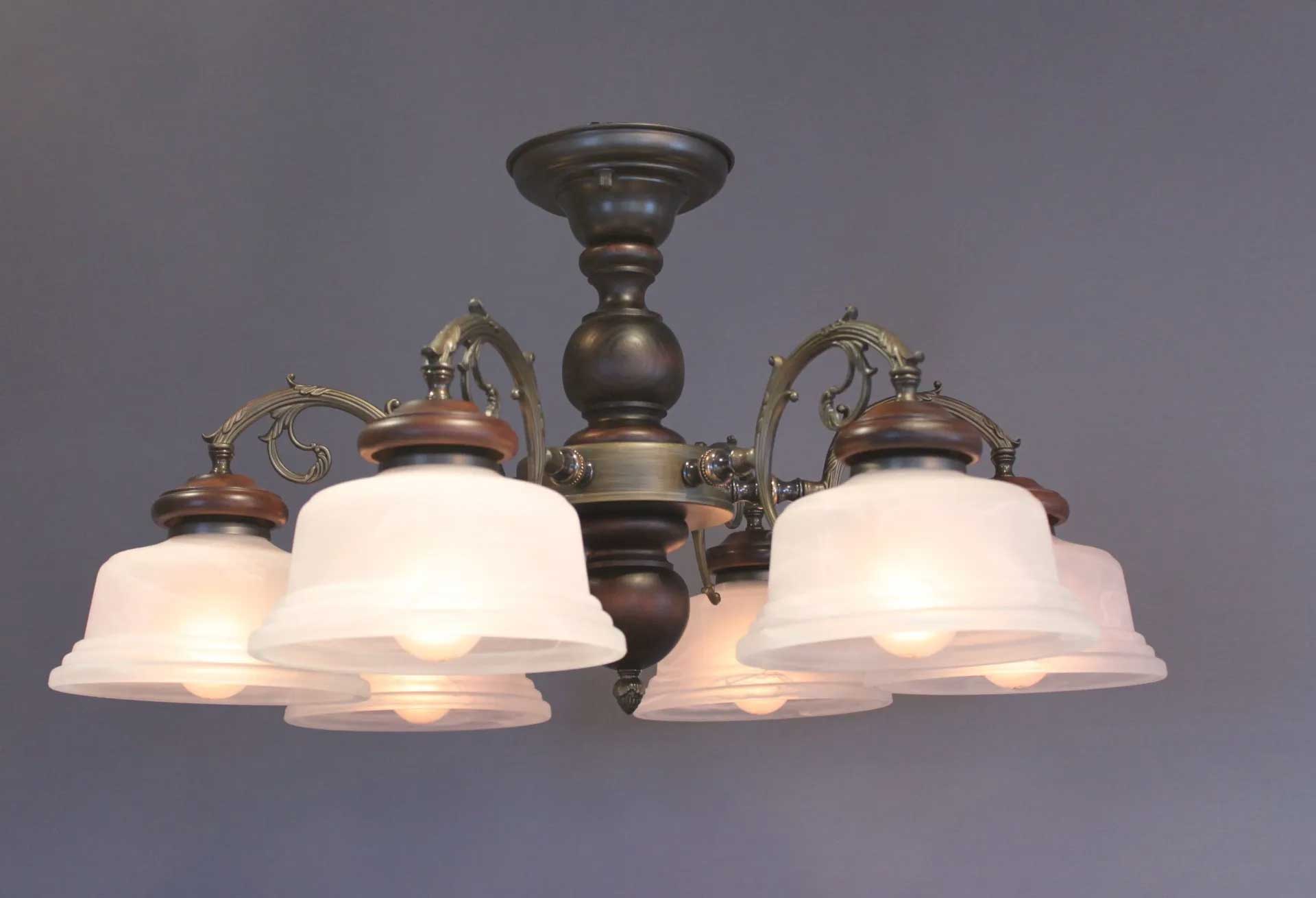 クラシックなレトロ感あるオリジナルタイプのシャンデリアです。アームは金属鋳物を使用し本体と各アームには木飾を使用しています。スタイルはどこか懐かしさを感じる定番のタイプで、重量感もあります。和の雰囲気にも使用できます。ガラスにはホワイトマーブルの柄が入っており、点灯時にほんのりと浮き上がって見えます。日本国内にて配線・組立を行っていますのでLEDももちろん使用可能です。