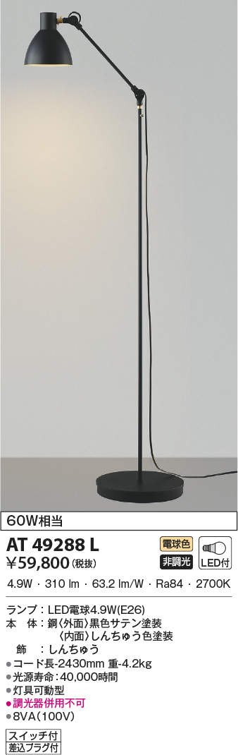 AT49288L コイズミ照明 LEDスタンド 60W相当 灯具可動型