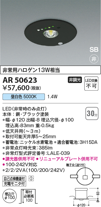 AR50623 コイズミ照明 LEDS形非常灯 非常用ハロゲン13W相当