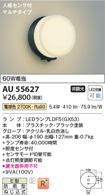 AU55627 コイズミ照明 防雨型ブラケット ポーチ灯 60W相当