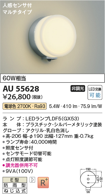 AU55628 コイズミ照明 防雨型ブラケット ポーチ灯 60W相当