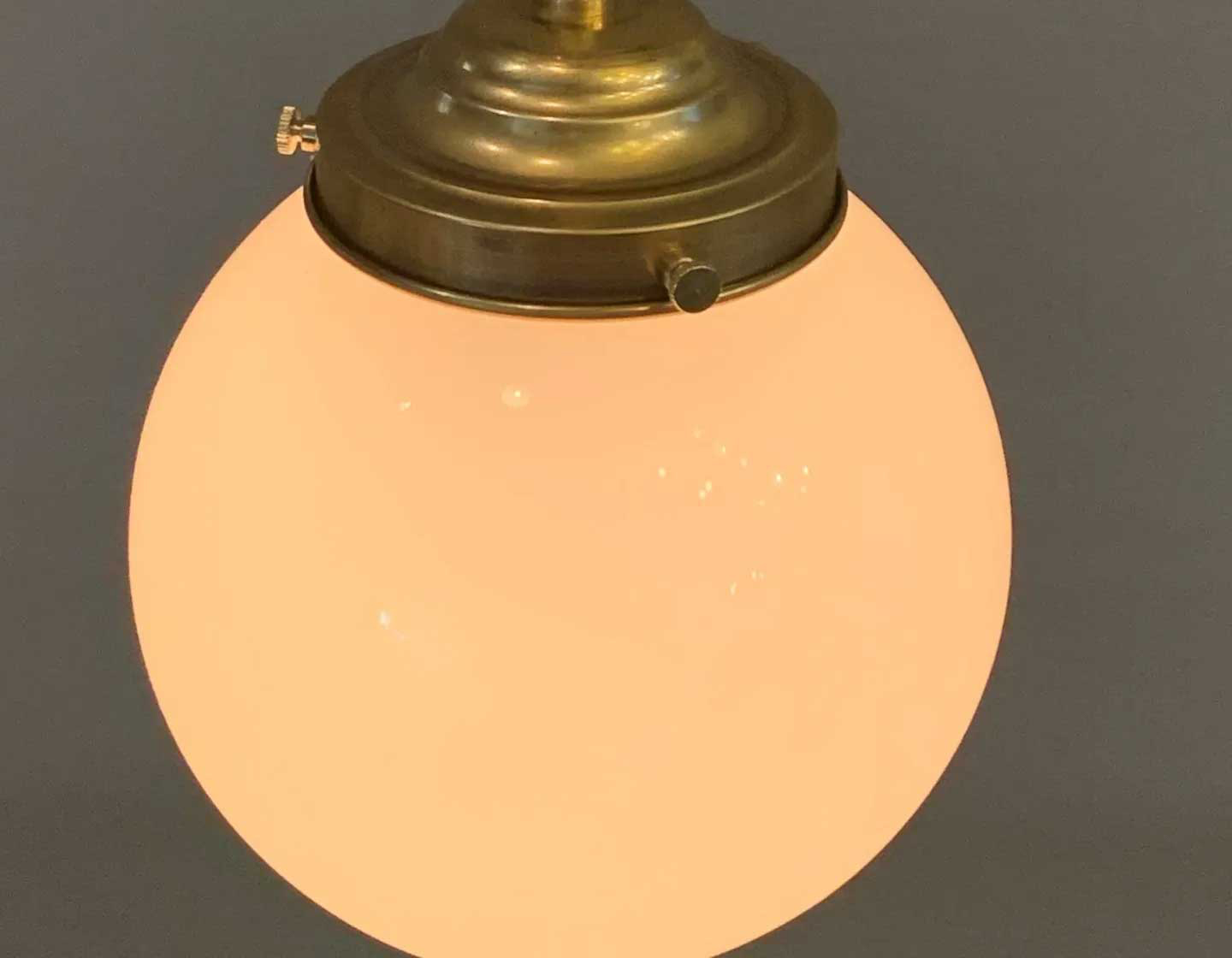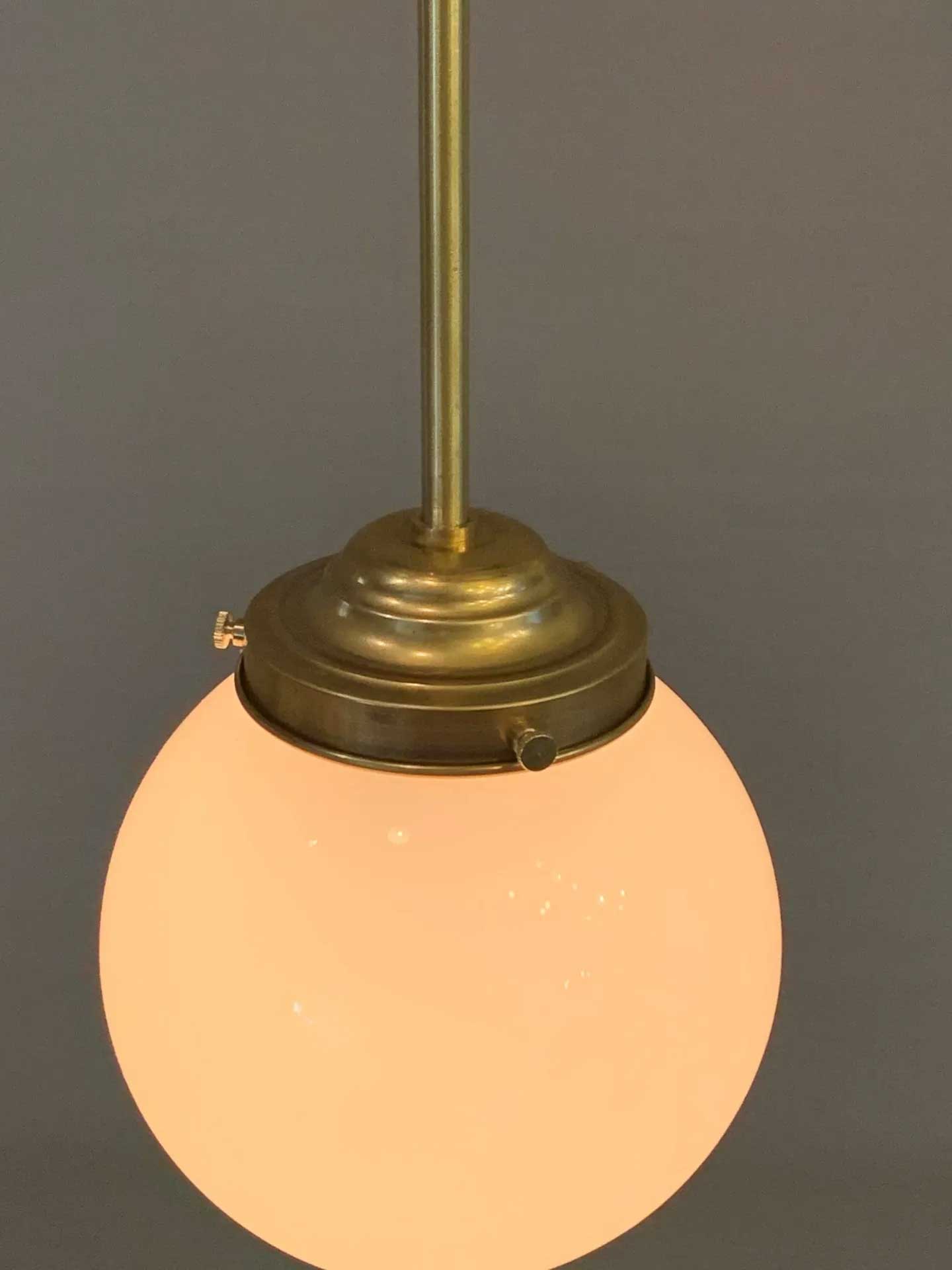 真鍮生地パイプ&ホルダーにΦ150mmの丸ガラスを使用したペンダントライトです。真鍮パイプ吊りにすることで器具の存在感を出しています。
