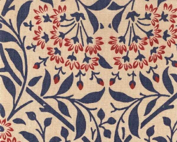 「ミカエルマス・デイジー (Michaelmas Daisy) 」はウィリアム・モリスの弟子のジョン・ヘンリー・デール (John Henry Dearle) が1912年にファブリック用にデザインした作品で、大天使ミカエルの祝日である9月29日頃開花する野の花のような素朴さ溢れる植物を描いています。モリスの活動の中でも、ひときわ充実している自然の樹木や草花などをモチーフにしたテキスタイルデザイン。一世紀以上経た今日でも少しも新鮮さを失わず、世界中で愛され続けています。