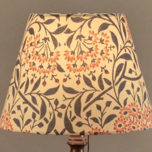 歴史あるイギリスの生地、William Morris のテキスタイルを使用し、全て国内で生産された照明器具です。生地の裁断、シェードの張込み、木の加工、塗装、本体の製作まで国内で丁寧に仕上げました。一世紀以上を経た今日でも世界中で根強いファンに愛され続けているモリスのテキスタイル。カーテンやクロスと揃えてご使用いただくのもおすすめです。