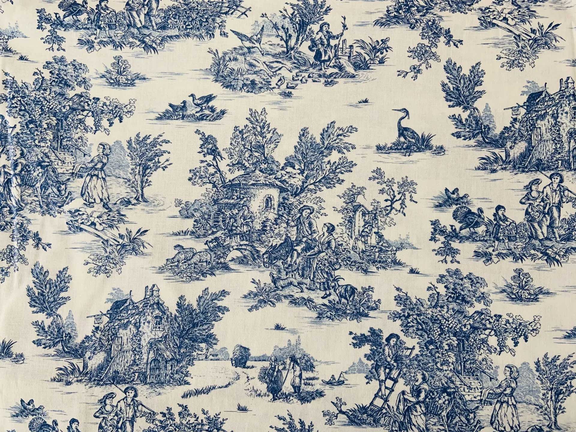 マリー・アントワネットも愛した魅惑のフランス伝統生地トワル・ド・ジュイ。トワル・ド・ジュイとは、フランス語で「ジュイの布」、「ジュイで作られた布」を意味し、もともとは、18世紀後半から19世紀半ばにかけ、パリ近郊の町ジュイ・オン・ジョザスの工場で作られたコットンプリント生地のことを指します。のどかな田園風景の中、牧人や農夫、語らう男女、狩りや季節の行事を楽しむ人々と動物たちが単色の濃淡で描かれた柄で知られています。リバティやウィリアム・モリスのコットンプリントより一世紀前に生まれたトワル・ド・ジュイは、工場閉鎖後も、資料や版木をもとに復刻され、その時代に合わせてアレンジされ、21世紀の今もなお世界中で愛され続けています。