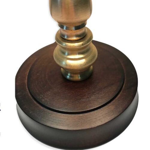 スタンド本体には天然木を使用しています。支柱部分には真鍮鋳物を使用して重量感のあるものになっています。支柱部分の真鍮は素材を活かすため表面処理を施さず、生地にヘアライン加工のみとしています。材質の特性上、色むらなどがある場合がございますが、経年変化としてお楽しみください。