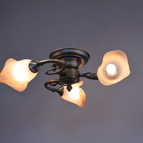 KSN-129-3PF アンバー色ガラス・鋳物輸入シャンデリア