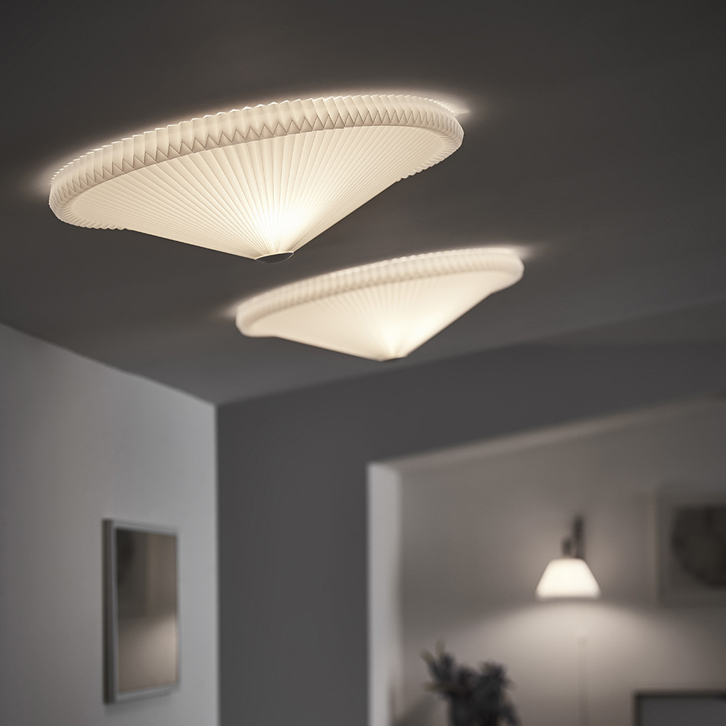 日本の折り紙にも影響を受けた、伝統の直線が美しいシリーズです。規則的に続く折りは美しい陰影を生み出し、レ・クリントの原点となっています。シェードは創業時から変わらず現在もデンマークの工房で熟練した折り職人によってひとつひとつ丁寧につくられています。