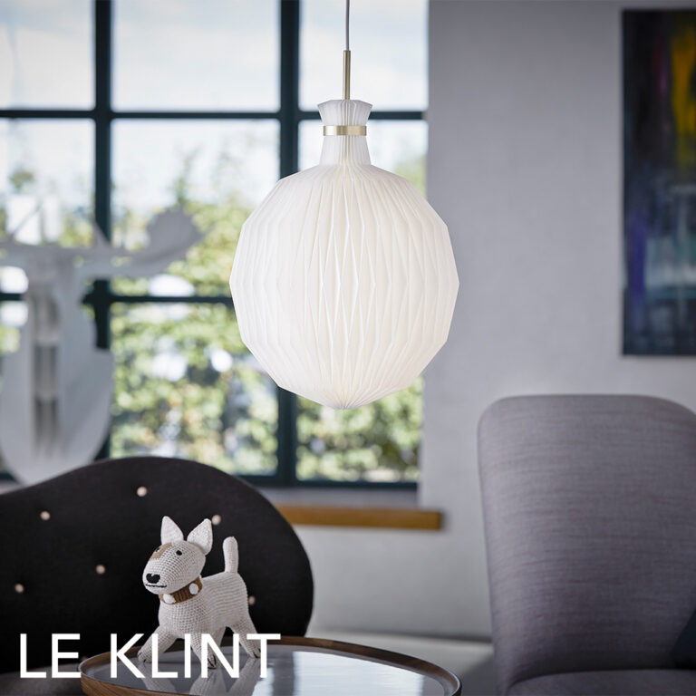 日本の折り紙にも影響を受けた、伝統の直線が美しいシリーズです。規則的に続く折りは美しい陰影を生み出し、レ・クリントの原点となっています。シェードは創業時から変わらず現在もデンマークの工房で熟練した折り職人によってひとつひとつ丁寧につくられています。