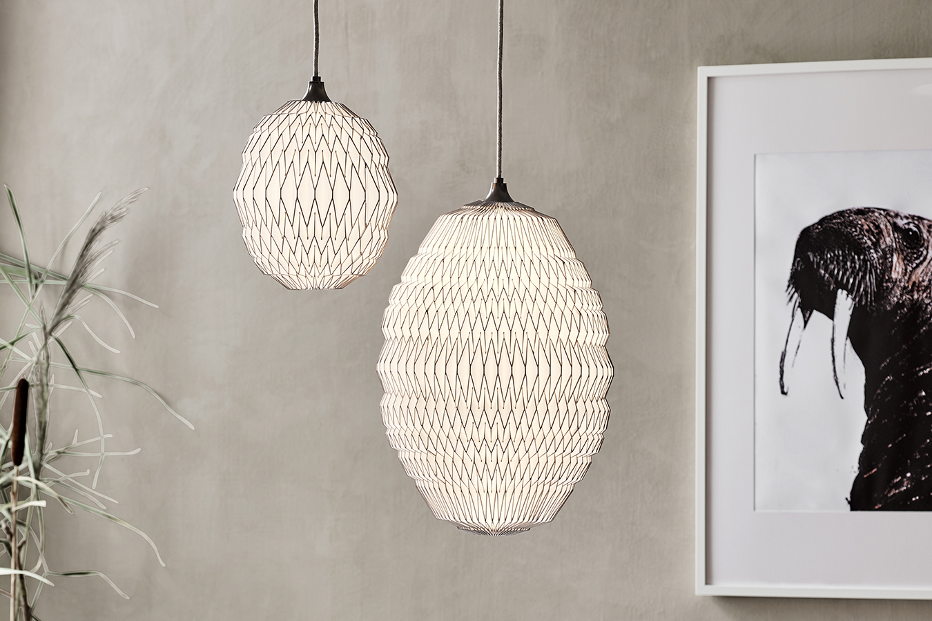 日本の折り紙にも影響を受けた、伝統の直線が美しいシリーズです。規則的に続く折りは美しい陰影を生み出し、レ・クリントの原点となっています。シェードは創業時から変わらず現在もデンマークの工房で熟練した折り職人によってひとつひとつ丁寧につくられています。